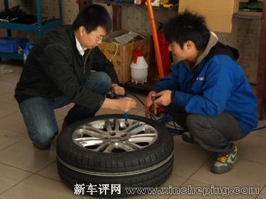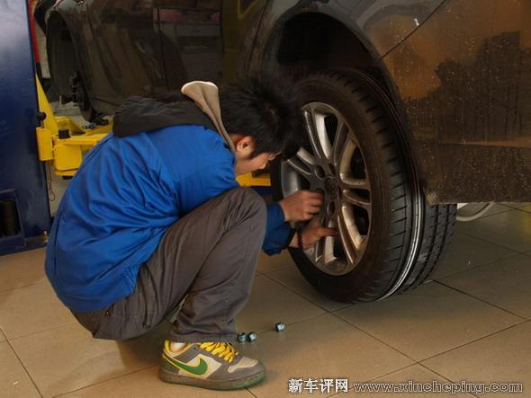 像这种大直径、扁平率小的轮胎,手艺比较一般的修理店是不会接单的,一来担心更换轮胎时刮花轮毂和损伤轮胎胎壁,二来怕装上去后位置不准确产生漏气情况。根据以上情况,尽管不去4S店更换也要找规模大、信得过的修理店进行。另外如果更换不对称型轮胎,务必注意INSIDE(靠内)和OUTSIDE(靠外)两边的摆放位置不要弄错。这里顺道提醒一下,通常不对称型的新轮胎都有白色线,如果分不清哪边靠里哪边靠外的,可以参考这条白色线的偏向位置,如果位置偏向左,那么左边就是朝外。还有另外一些不对称型轮胎OUTSIDE那面会有一个箭头(方向指向),意思就说轮胎只能往指针方向滚动。