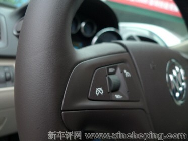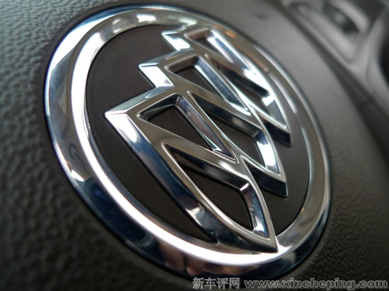 【新君威车厢里有很多闪亮的镀铬装饰,包括方向盘上的别克标,不过我们在使用中,发现这个闪亮细节有时候过于“闪亮”,会把车外的阳光反射到驾驶员的眼睛上,有些影响视野】