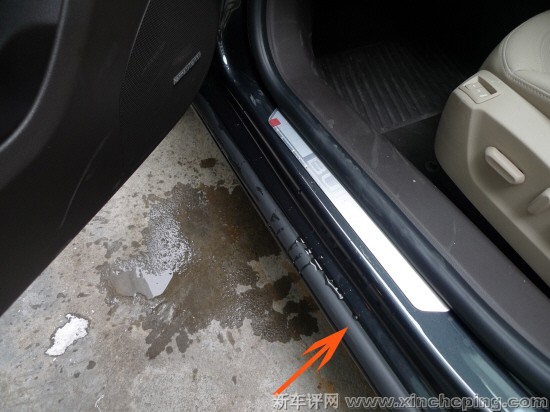 【一般来说,车门框和车门上都会装有密封条,新君威除了常规密封条外,还在车门框下方最外侧装上一条横跨前后门的密封条,对车厢隔音、密封有很好帮助,但在下雨天时容易积水,在大雨后的第二天开门时,有时候会掉下一小滩水】