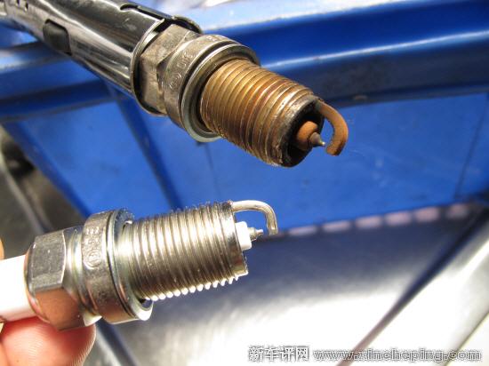 图中新旧对比,可见使用了15000km的火花塞老化程度已较为明显,很难想象TSI发动机内部工作环境究竟有多苛刻?