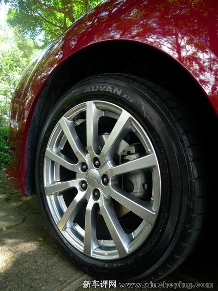 说到轮胎性能,不能不提的是轮胎品牌和型号。力狮用的这款日本横滨Advan A10轮胎,属于该厂偏高级运动型号,这款胎干地抓地力很好,但加速过程以及在100km/h以上巡航时胎噪较显著。查阅了国内横滨官网的零售产品线并没有这款胎,换言之如果轮胎受损到要换胎,就必须光顾4S店。