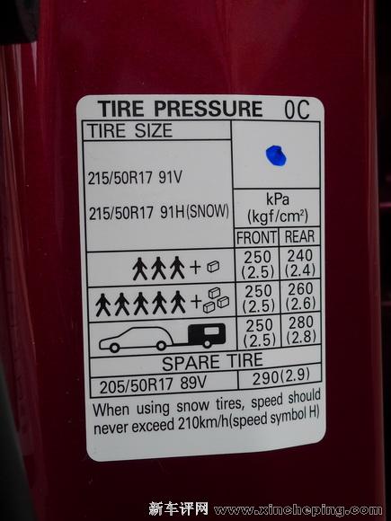 好了,我们看看力狮2.5i所用的轮胎。它的215宽度只是中高级轿车的入门水平;而50的扁平率则偏低,说明它走“薄胎”路线。对于215的宽度,我为力狮鼓掌,因为开了它这么长时间,我没有一刻感觉它的轮胎抓地力不足,无论是前轮还是后轮,都能安安稳稳地抓地。其中很大的一个原因,就是力狮用全时四驱的把持,接近极限时,力狮的每个车轮平均受到的压力要比一般前驱或后驱的车少得多,少的比例绝不止215/225这样的比例。所以215的宽度对力狮来说不但足够,可能还有余了,它可能用再窄一点的胎都可以(例如205),那样它会更加省油。只是这年月你要是在轮胎规格上定的太低,会被人诟病、影响销售而已。