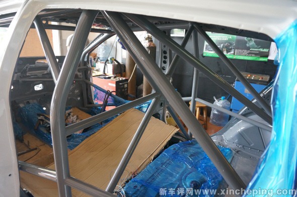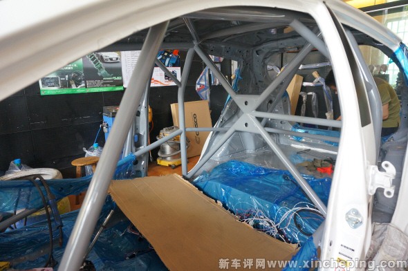 要达到参加赛车的标准,首先必须给赛车焊装防滚架。所谓的防滚架其实就是由很多金属钢管组成的金属笼子,相信大家曾在拉力赛中看到赛车翻滚几圈之后,即使车身外部惨不忍睹,车手依旧安然无恙。这一切都归功于防滚架的功劳,因为防滚架能够大大提高车身强度和抗扭刚度,在碰撞过程中能够给到车手最大的保护。当然除了烧焊防滚架之外,为了让车身能够应付更加激烈的赛道驾驶,在车身上同样也要加焊、补焊。通过这两项措施,才能让致炫达到赛车的基本门槛,如果连安全保障都做不到,就更别谈赛车了。