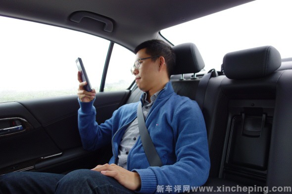 我作为乘客进入后排,当司机开车动作粗鲁时,后排乘客感觉到的横摆、点头都挺明显,因为雅阁的转向比较灵敏、底盘也属于偏硬,所以整个车身动态对驾驶者的动作“响应”就是比较直接的。在市区里快节奏地走走停停,后排乘客会有晕车感。我也发现当路面颠簸时,后排的纵向(上下)震动也比这个级别的平均水平要大些,最直接的表现就是同一段路,在我蒙迪欧的后排上可以清晰地看手机网页,而在雅阁上看一小会,会觉得眼花头晕。关于九代雅阁后排舒适性有所下降这一点,在之前的车评里也提到过,这个问题说实话并不突出,我们也是这车实在没什么明显短板的情况下,找到了这点不满。必须说,雅阁的后排不花哨,但本质层面确实能够给一般老百姓用户很大的好感。
