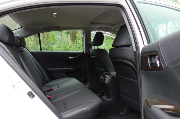 雅阁的后排腿部空间,总能让人联想起“充裕”二字。长测期间我曾有过几次长途乘坐的机会,182cm身高的我进入到雅阁后排,丝毫没有任何压抑的感觉,腿部能自由地舒展,根本不需要触碰副驾驶那老板键,去增加额外的腿部空间,这后排让乘客有些骄傲感。