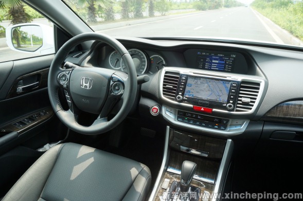 内饰布局没有多少花俏的地方,高档感并不强烈,设计以实用为主,各项功能设置仍算合理。在我们常接触的方向盘、排挡杆、门板等部分,可以看出本田是下了不少功夫的,特别是方向盘的手感,值得我们特别给予点赞。功能按键阻尼设定到位,回馈力度适中,符合这级别车型应有的水准。分层式设计的中控台,可读性还不错,没有因为烈日照射而影响信息阅读,但部分没有多少实用性能的装饰部件,却会有反光的现象,中午特定时间还会影响驾驶者视野,材料搭配仍有改进的地方。