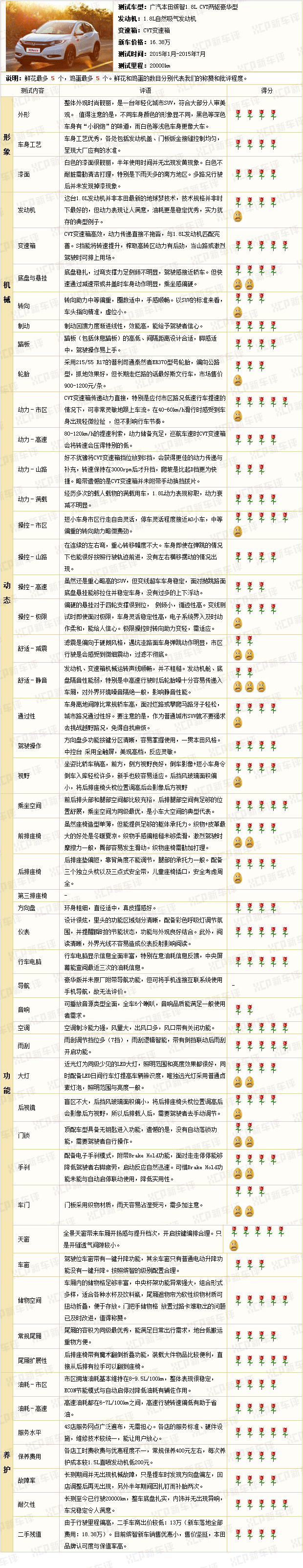 广汽本田缤智1.8L半年长测鲜花鸡蛋表
