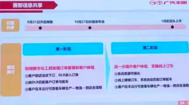 近日,网上曝光了一张关于广汽丰田赛那SIENNA车型的预售及价格发布的时间点图片。从图片信息来看,全新赛那将在9月21日开启预售,10月27日发布价格,2022年1月份陆续到店。而让人关注的是,全新赛那开启订单模式,在系统中实行一人一车的方式,跟全新一代汉兰达线上订车模式有异曲同工之妙,这样的订单模式或将有效避免加价行为?至于为什么老司机会打上问号,懂的都懂。