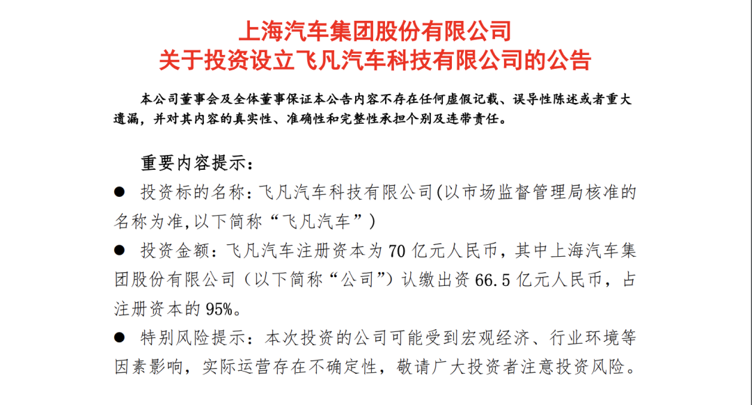 距离上汽“不出卖灵魂”的宣言过去不过百余天,为更好拥抱“新四化”,它搞了一个“大动作”。10月29日,上汽集团发布公告:上汽集团投资70亿设立“飞凡汽车科技有限公司”,将上汽乘用车分公司原有R品牌独立,由飞凡汽车以轻资产方式进行市场运作。