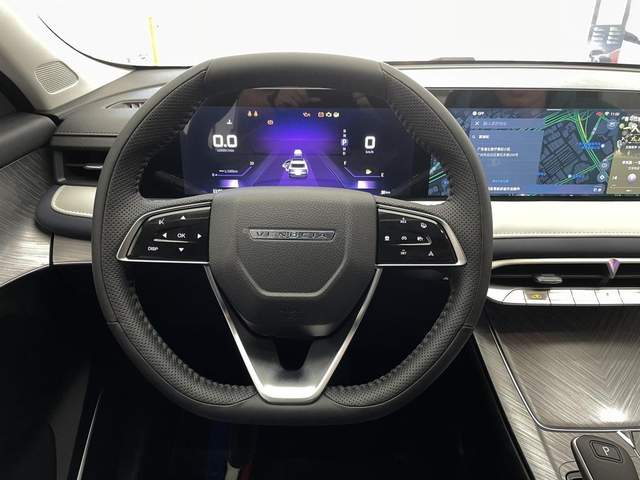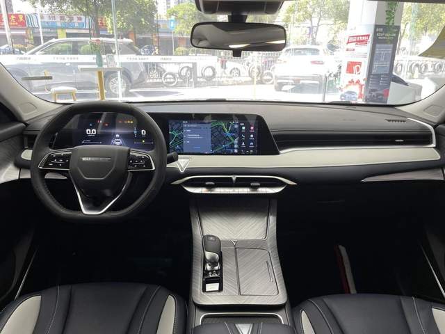 进入启辰大V车内,最抢眼的肯定就是24英寸一体式大联屏,在这个大屏横行的时代,不跟上潮流就相当于抛弃年轻消费者的市场。用了大面积的皮质、金属饰板覆盖,金属材质的按钮、电子挡杆等组合一起,整个中控看起来就不廉价,配色上有纯黑和蓝/灰双拼色两种。