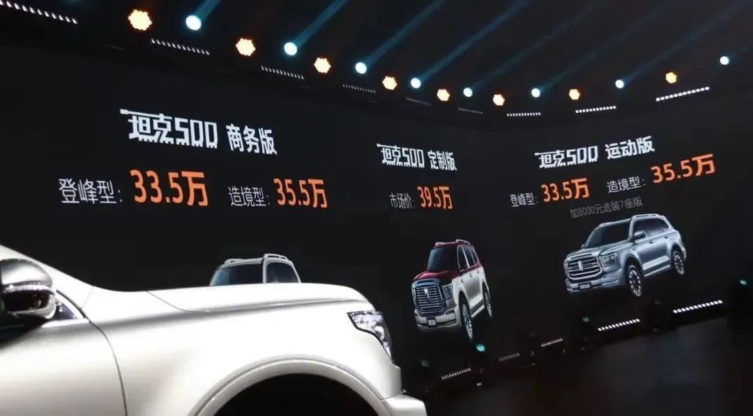 日前,坦克500正式上市。新车共推出商务版、运动版及定制版三个版本,同时提供5座、7座车型可选,售价区间为33.5-39.5万元。