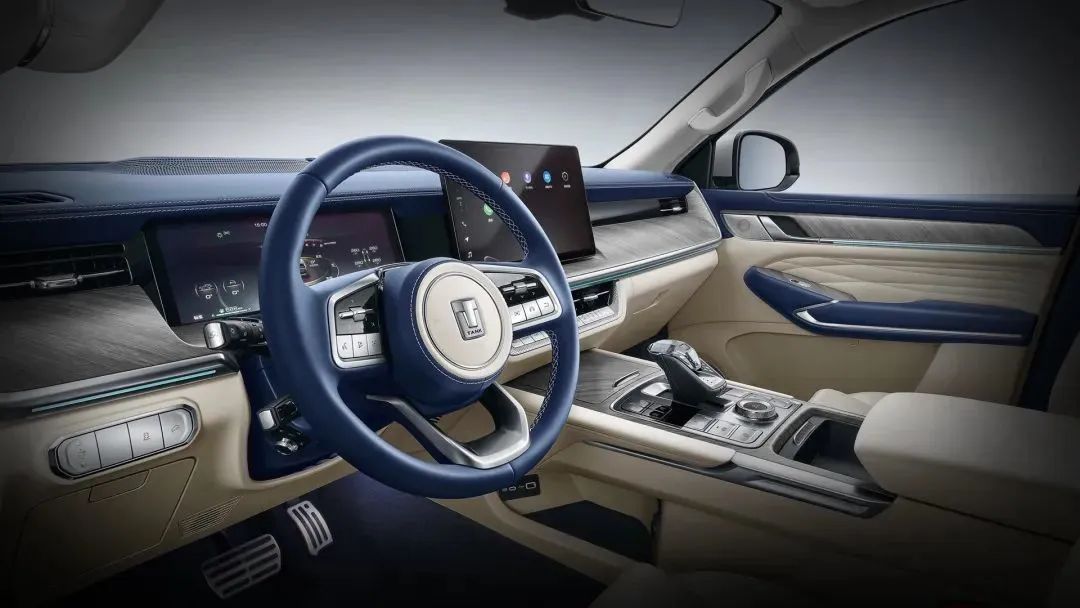 坦克500把12.3英寸全液晶仪表、14.6英寸中控大屏、Nappa真皮座椅、水晶挡把和旋钮式功能按键、豪华音响悉数给到你,内饰材料用上大量的软性材料包裹还有双拼色处理,一股浓浓的豪华商务风,不难看出,这台车的目标用户非常明确。