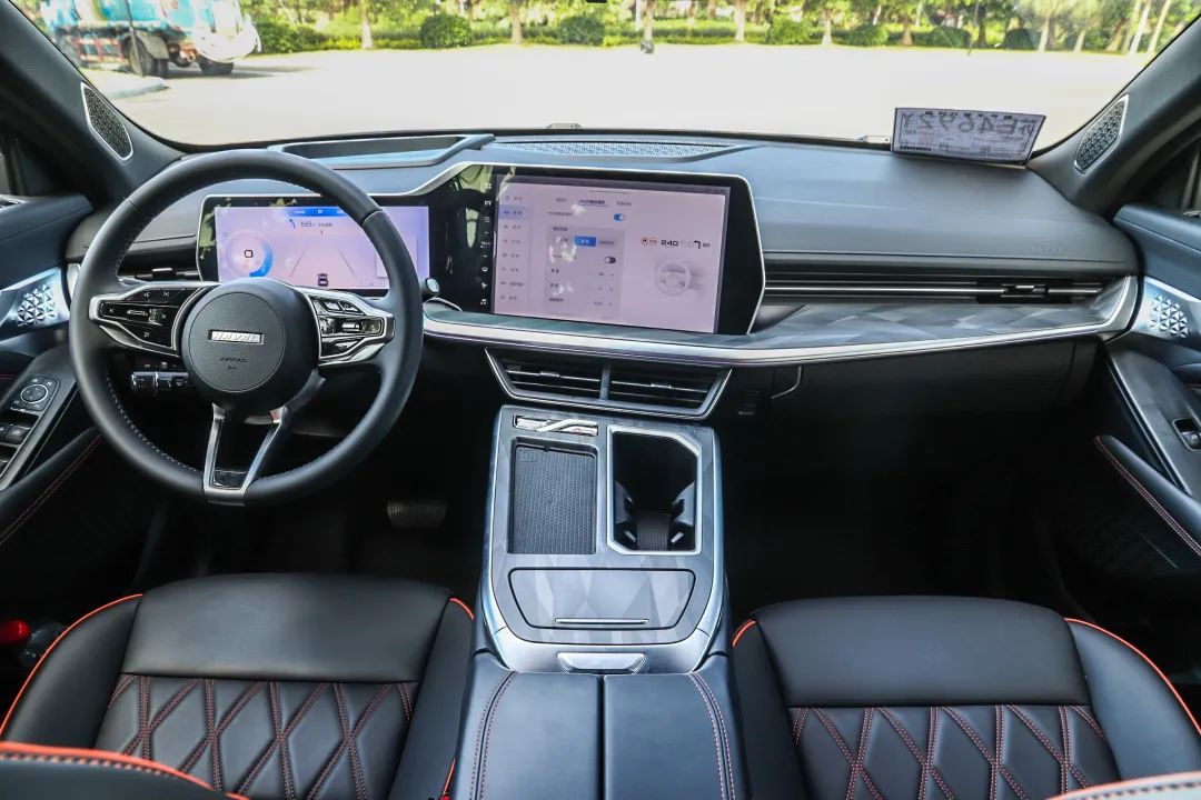 作为最特殊的地方,神兽 DHT的动力系统必须提及一下,1.5T+电动机的混动系统,综合功率179kW、最大扭矩530N·m,传动匹配两挡DHT变速箱。另外官方还给出了几组数据:0-100km/h加速时间7.7s,综合油耗5.5L/100km,续航可达1000公里。