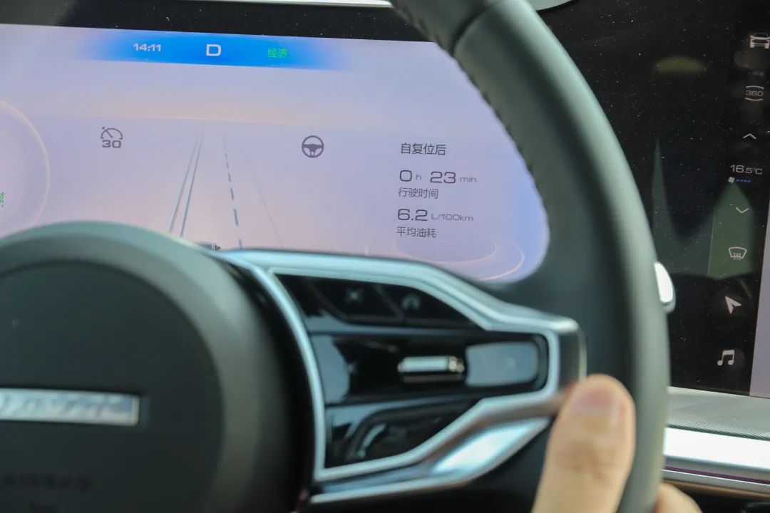 当然,数据归数据,这里面的学问大家都懂。零百加速和最高续航在试驾活动中没法测,但是油耗这一块那肯定能找到一个答案。在我接手后,特意对油耗数据进行了复位,20多分钟的流畅行驶后表显油耗为6.2L/100km。
