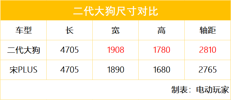 不难发现,哈弗二代大狗PHEV对比的车型就是比亚迪的宋PLUS DM-i,由于笔者还没试驾过二代大狗,所以下面简单的从车型配置方面对比两车。二代大狗相比宋PLUS的最大优势在于其车身尺寸,在车长完全相同的情况下,二代大狗的轴距相比宋PLUS要稍大一点,在车厢空间方面二代大狗会更有优势。