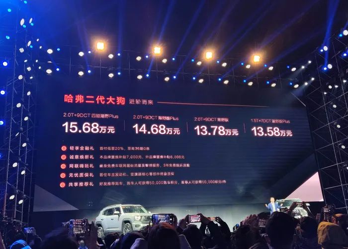作为哈弗狗系列的第三名成员,二代大狗在2月27日晚正式上市。二代大狗相比前辈车型最大的变化当然是动力总成的改变,搭载了长城的柠檬混动系统,插混版本售价为16.28-17.58万元。在此次上市发布会上,哈弗还带给我们一个惊喜,这个留到后面再说。