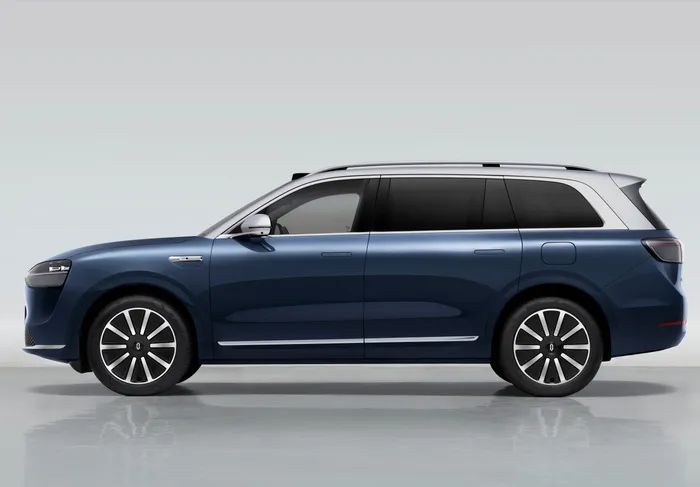 问界M9并没有在细节装扮上下太多工夫,它的整体线条比较简单,但也符合大型SUV的端庄气质。它还使用了双色车身来强调自己的高端身份,和众多豪华品牌类似。各位是否喜欢双色车身,也不妨在下方留言。另外,它有隐藏式门把手、低风阻轮圈、车顶行李架等。