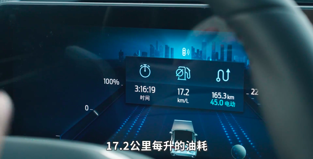 但有意思的是,该车的表现数据是每升油能行驶多少公里,这一点可以说是非常美式的显示,需要一定的时间去适应。