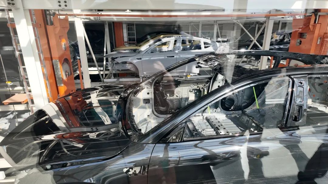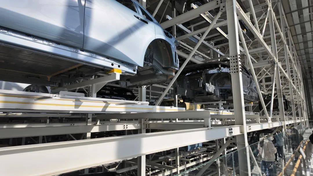 车身车间可以实现100%的自动化装配生产,就是得益于「订单配置解耦」的制造工艺,可以在车身拼接环节实现与订单配置完全解耦,以最高效率的形式生产白车身,然后将组装好的白车身运输至BDC立体车库进行中转。