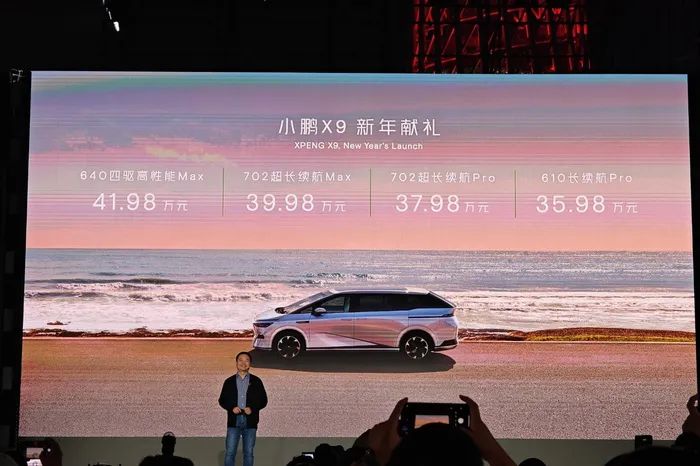 自G9开始,小鹏找到了最合理的定价方式,能低则低,就是不能作死。其实在2023年广州车展时,小鹏就公布了X9的预售价格——38.8万元起,这个价格普普通通、无惊无喜,但令人没想到的是,这台抢着在2024年第一天上市的新车给出了一个“新年惊爆价”,35.98-41.98万元。