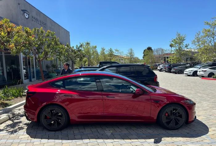 4月2日,网上曝光了最新的新款特斯拉Model 3高性能版的实拍图片及视频,据说新车是在美国加州的一个小型私人活动中进行展出品鉴。