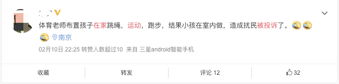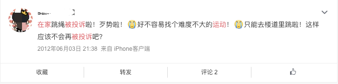 在家运动造成扰民被投诉。