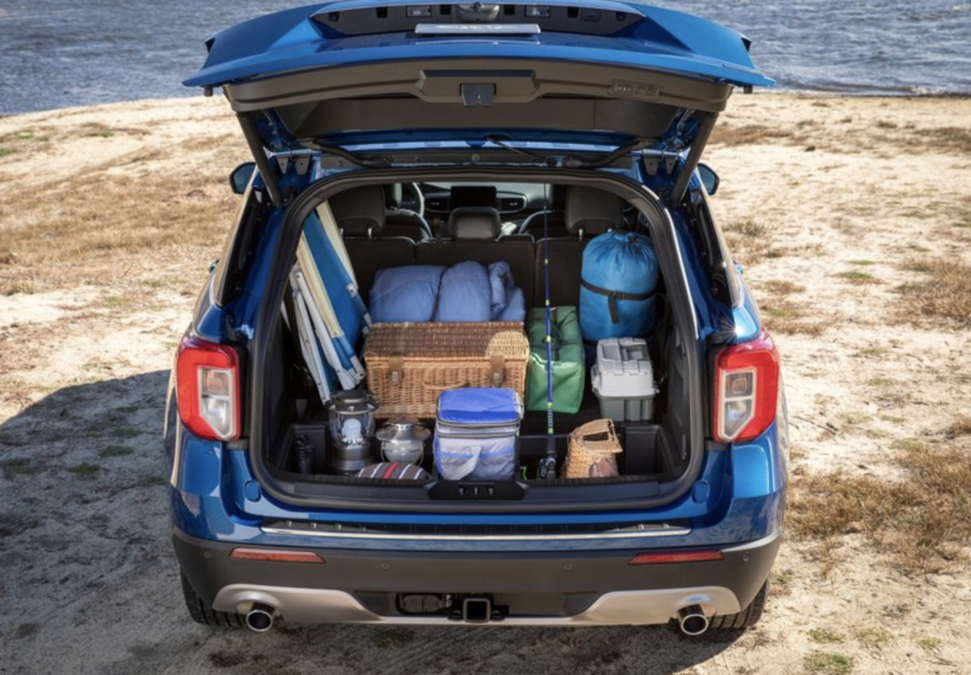 电动放倒探险者第三排座椅(低配是手动的),你就会得到一个超大的后备厢空间,大到足够容纳一整套海钓装备。