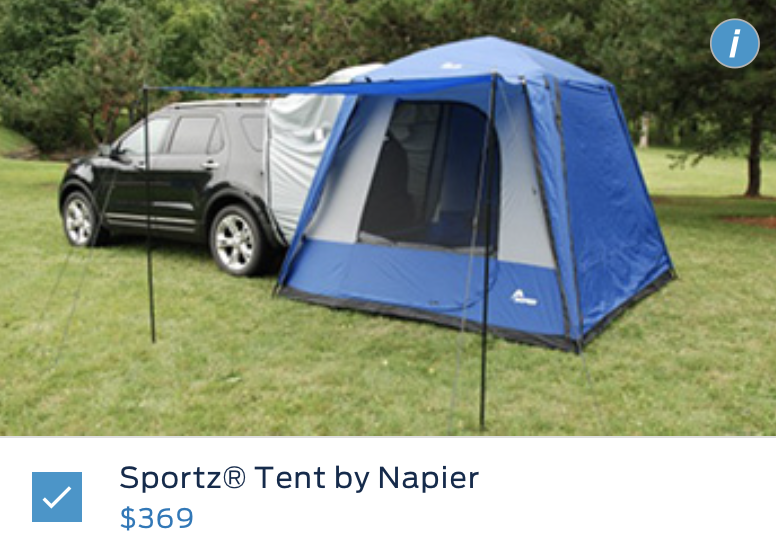 为了让大家开着探险者出门玩得尽兴,福特也是煞费苦心。联名推出的车用帐篷,可以和车辆尾门连在一起,理论上车内音乐、空调都能为帐篷所用。