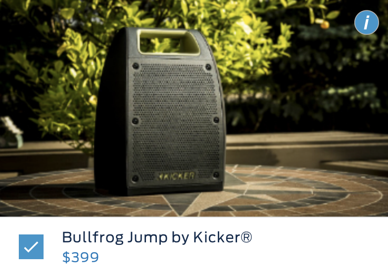 移动立体声音响,野外派对必备,选装价399美元,约合人民币2805元。