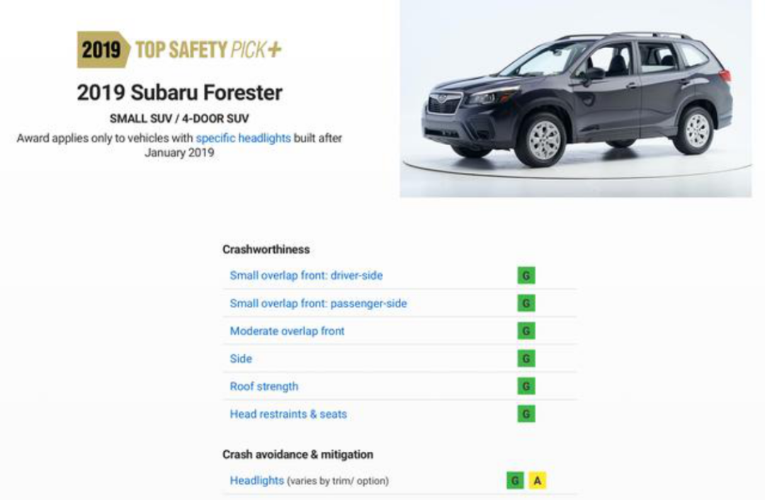 二是森林人是北美最权威的《消费者报告》“十佳车型”的常客,拿最近的说,《消费者报告》“2019年十佳车型”里,森林人就榜上有名。三是,斯巴鲁森林人在北美公路安全保险协会IIHS的碰撞测试中不但拿到几乎全G(great)的成绩,而且还成功登上IIHS的“2020 TOP SAFETY PICK or TOP SAFETY PICK+”榜单。