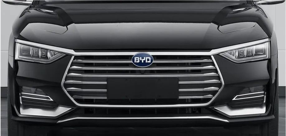 e9的前脸在汉DM的基础上作出了细微调整,中网面积有所缩小,内部采用横条状镀铬装饰,显得更加成熟稳重,上方也换装了“BYD”传统Logo,此外,保险杠两侧的雾灯区域也存在一些不同之处。