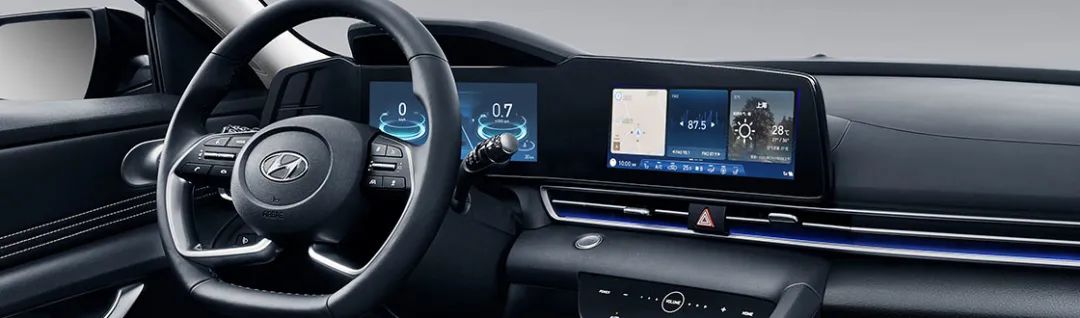 第七代伊兰特的内饰搭载了一块双10.25英寸的超大智能双联屏,充分的和自身基于i-GMP平台和Hyundai SmartStream新一代动力总成技术所加持的多达23项智能驾驶辅助功能相匹配,相信能给与驾驶者更智能,更舒心的辅助驾驶体验。